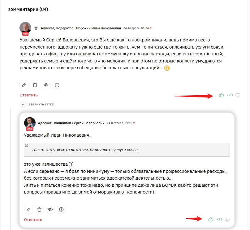 Как писать комментарии, чтобы не перетрудиться? Просто выразите позицию: согласие или аргументированное «вы всё врете». Пример: «Коллега, позиция смелая. Но в моем регионе суды обычно бьют за такое канделябром по ГК...» — Всё. Вы в игре. Вас заметили.
